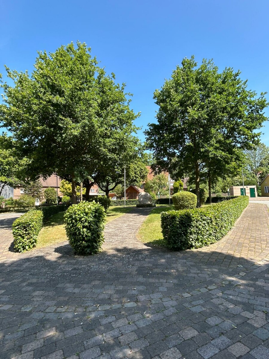 Der Platz liegt direkt am Dorfgemeinschaftshaus und verbindet Tradition, Erinnerung und Zusammenhalt auf eindrucksvolle Weise.